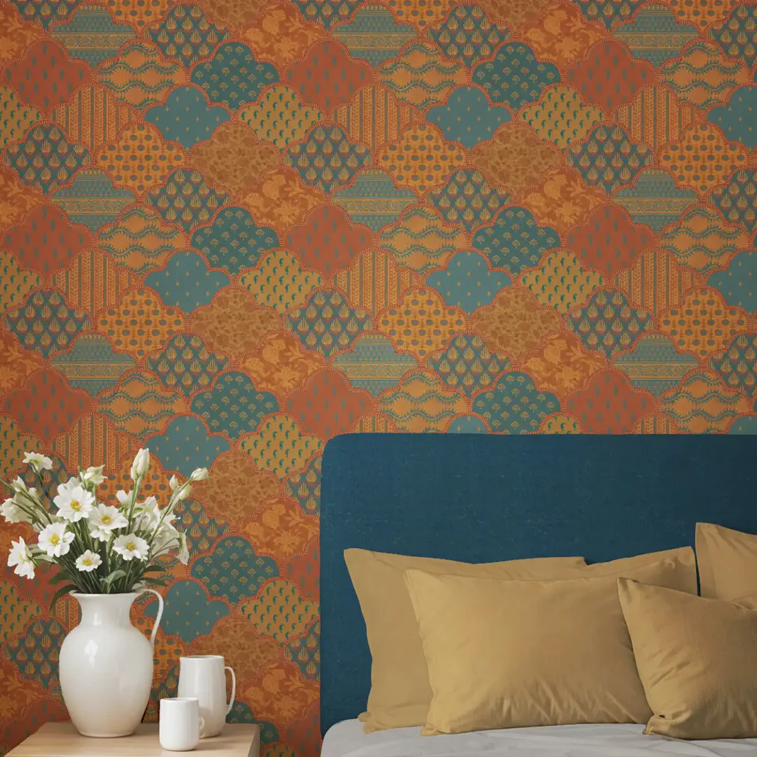 Chhap Indian Roll Wallpaper is inspired by traditional Indian block-print art, reflecting heritage craftsmanship and timeless design. The rhythmic patterns and authentic detailing add character and warmth to interiors, making it ideal for feature walls, living spaces, or accent areas. Crafted with premium-quality material, this wallpaper roll ensures durability, refined texture, and a sophisticated finish that blends beautifully with both modern and classic décor.