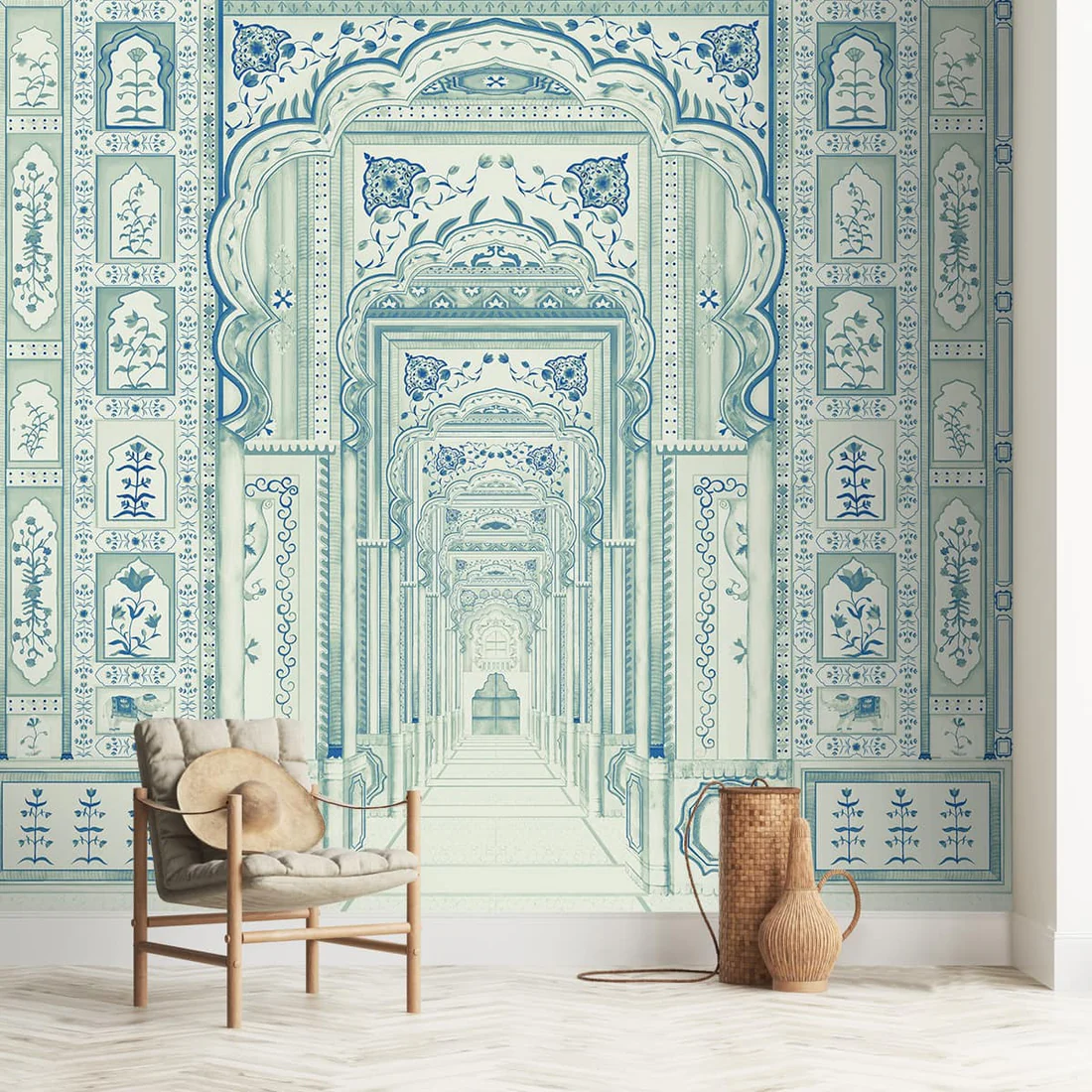 Dilli Darbar Wallpaper reflects royal Indian heritage with rich detailing and a luxurious visual appeal inspired by classic courtly aesthetics. The elegant patterns create a grand atmosphere, making it ideal for feature walls, living rooms, or statement interiors. Designed under the Suneherii Collection, this wallpaper brings warmth, depth, and sophistication to your space. Crafted with premium-quality material, it offers lasting durability, refined texture, and a timeless finish suited for both traditional and modern décor.