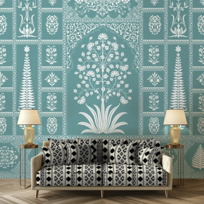 Gul Indian Mughal Wallpaper draws inspiration from the rich artistic heritage of Mughal design, featuring elegant floral motifs and refined patterns that bring cultural depth and timeless sophistication to your interiors. The graceful composition adds warmth and visual charm, making it ideal for feature walls, living spaces, or accent areas. Crafted with premium-quality material, this wallpaper offers durability, a smooth texture, and a classic aesthetic that enhances both contemporary and traditional décor.