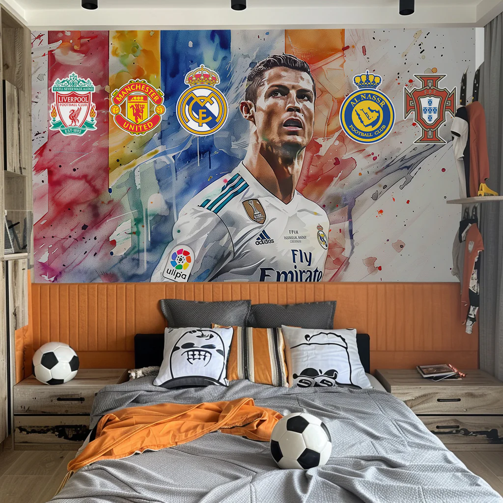 Legends – Ronaldo Wallpaper showcases an iconic football-inspired design celebrating one of the greatest players, bringing energy and motivation to your space. Perfect for bedrooms, gaming rooms, sports rooms, and feature walls, it adds a bold and inspiring atmosphere. Available in Dubai, UAE with premium-quality wallpaper and professional installation by Mwalls.