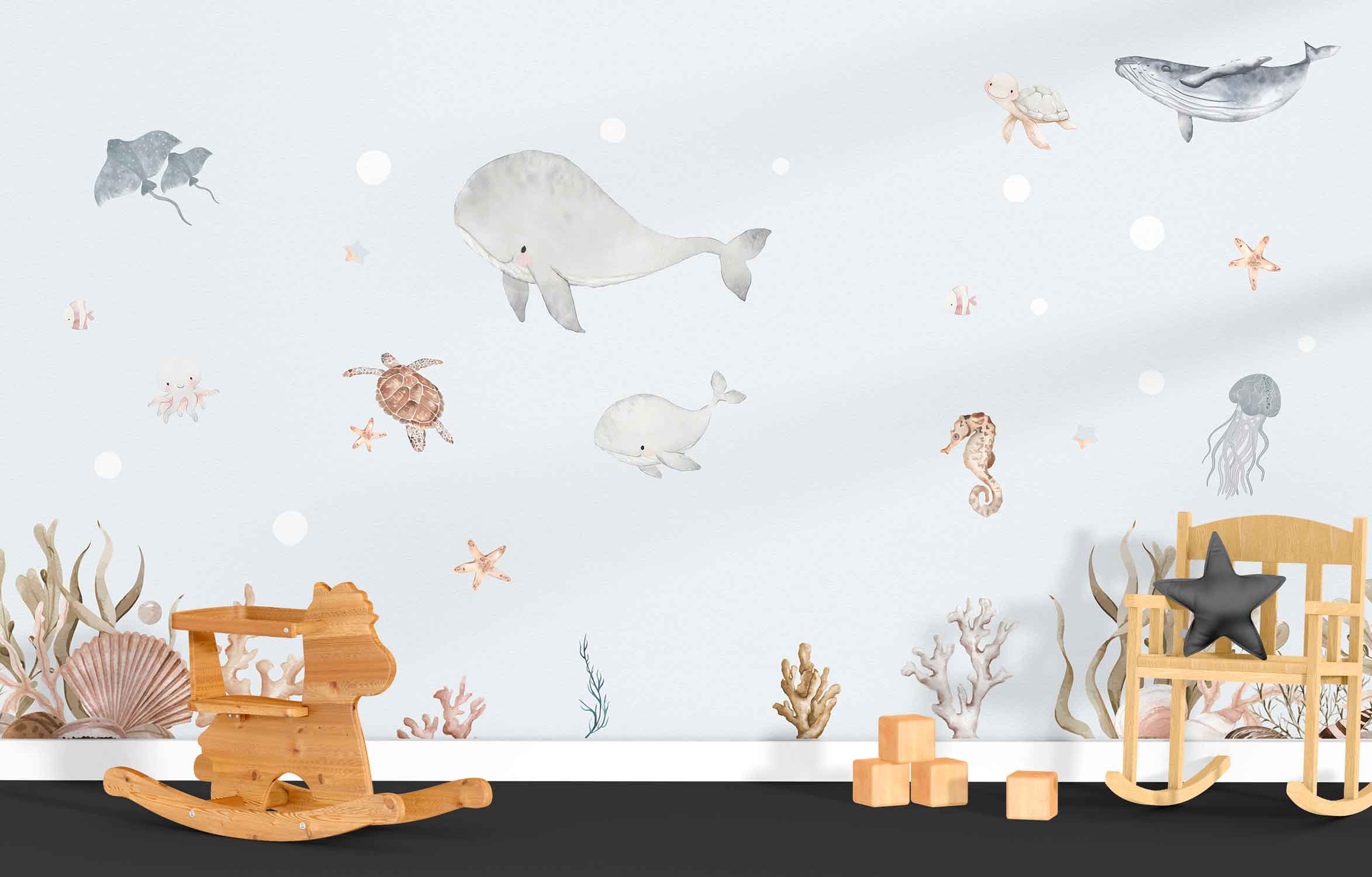 Oceanic Dreams kids wallpaper brings the calm beauty of the ocean into children’s spaces with its soothing colors and imaginative underwater-inspired design. Featuring gentle waves and dreamy marine elements, this wallpaper creates a peaceful yet playful environment that encourages curiosity and creativity. Made using child-safe, eco-friendly materials, it is durable, easy to clean, and suitable for everyday use. The balanced visuals make it a great choice for kids’ rooms, nurseries, and play areas. Custom sizing is available to ensure a perfect wall fit. Mwalls provides professional installation and reliable service across Dubai and the UAE, delivering a smooth and hassle-free experience.