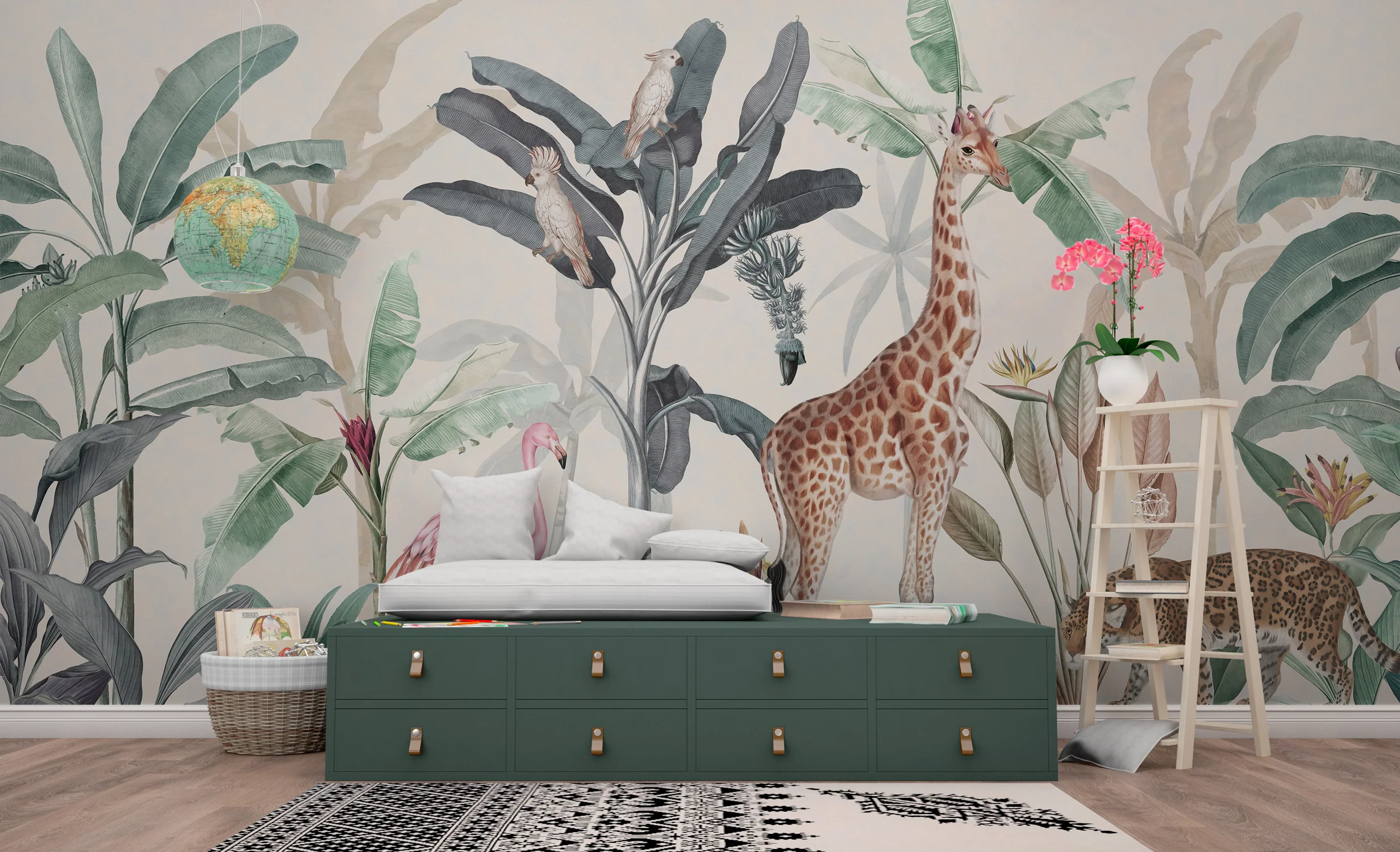 Savanna Stories kids wallpaper brings a storytelling-inspired safari theme into children’s spaces. Featuring playful savanna animals and natural elements, this design encourages imagination, creativity, and curiosity. Made using child-safe, eco-friendly materials, the wallpaper is durable, easy to maintain, and suitable for everyday use. The warm colors and engaging visuals make it a lovely choice for kids’ rooms, nurseries, and play areas. Custom sizing is available to ensure a perfect wall fit. Mwalls offers professional installation and trusted service across Dubai and the UAE, delivering a smooth and worry-free experience.